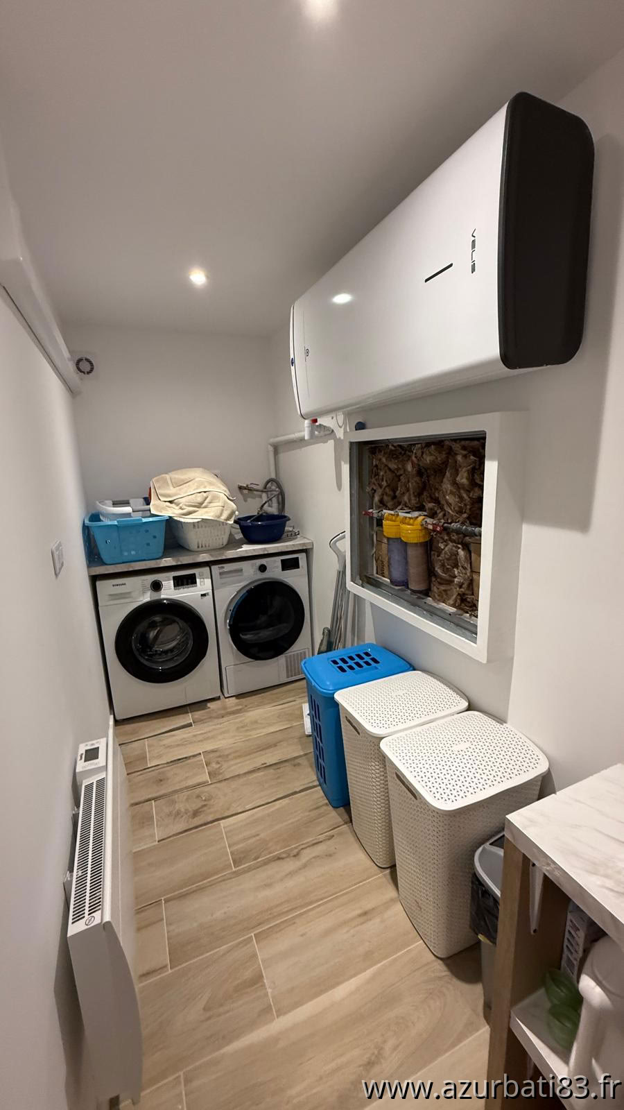 Buanderie technique : Comme dans notre projet de Saint-Raphaël, nous créons un local dédié. Avantages : bruit du lave-linge isolé, risque d’inondation contenu. Nous installons un bac de rétention sous les machines, relié à une pompe de relevage silencieuse. Le chauffe-eau plat (Ariston Velis) est fixé en hauteur : gain de place et sécurité (hors de portée des enfants). La trappe de visite large (60x60 cm) avec cadre alu anodisé permet un accès rapide aux nourrices – un détail qui fait la différence lors d’une fuite.